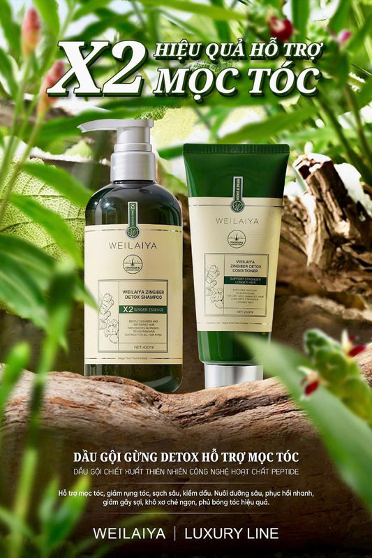 NEW WEILAIYA X2 GINGER ESSENCE ZINGIBER DETOX SHAMPOO & CONDITIONER BUNDLE 620ML FOR OILY HAIR